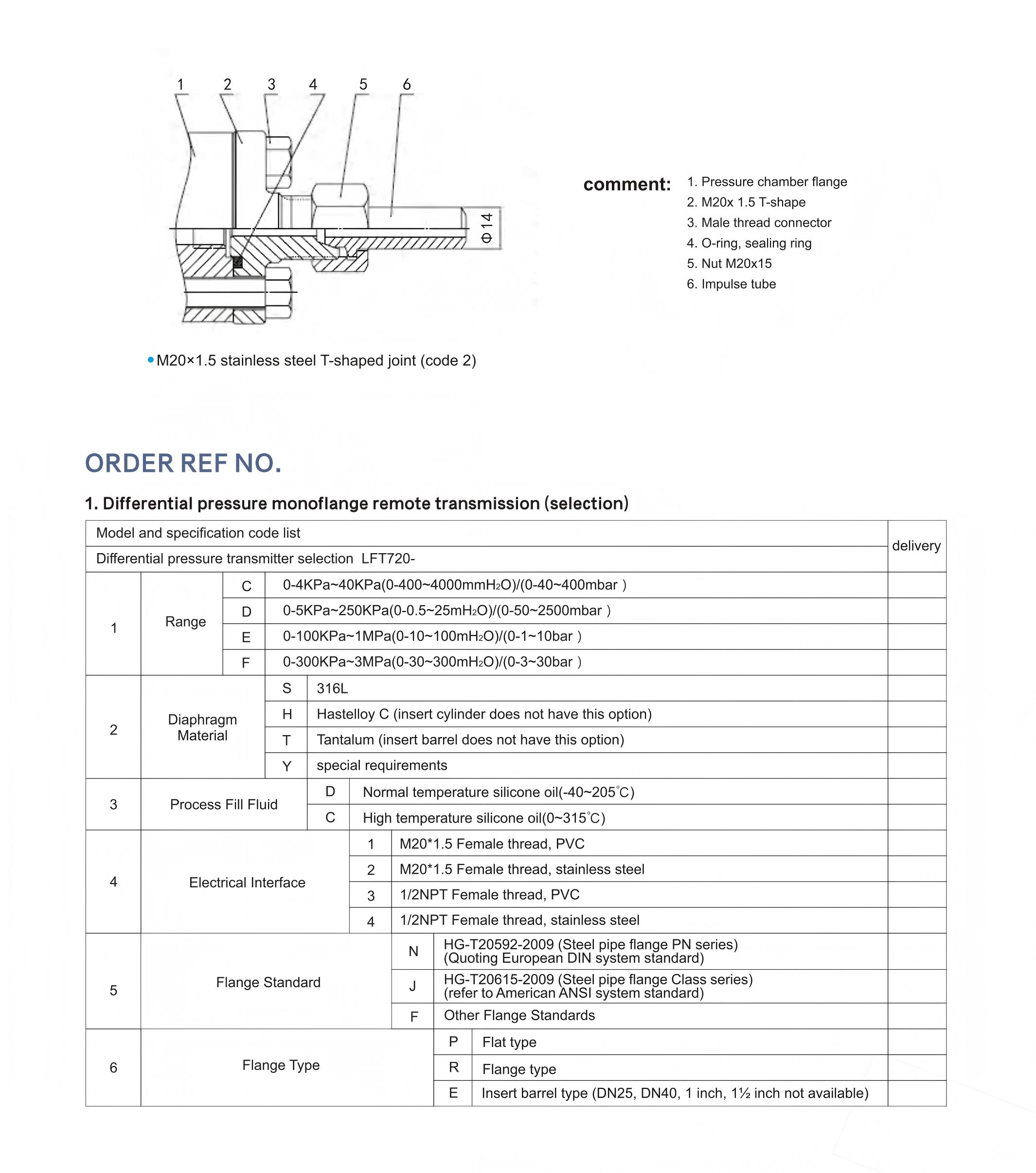 Specification of Double Flange-mounted Monocrystalline Silicon Differential Pressure Transmitter LFT720B